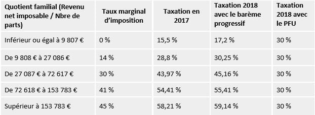 Mais attention : la flat tax est, à partir de 2018, le régime d’imposition par défaut de la plupart des revenus du capital. Une option est cependant prévue afin de soumettre les revenus concernés au barème de l’impôt sur le revenu.