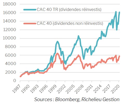 CAC 40 vs CAC 40 TR depuis origine