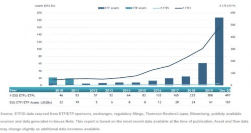 ETFGI reports assets invested in ESG ETFs and ETPs listed globally reach a new milestone of US$187 billion at end of 2020