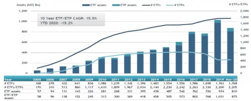 Europe ETFs and ETPs asset growth as at the end of March 2020