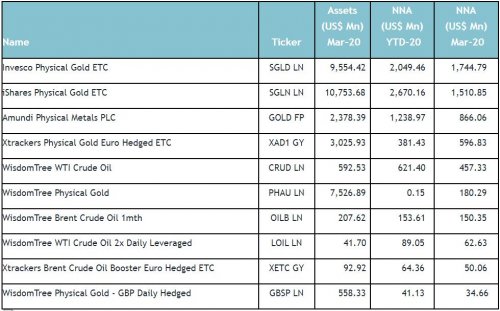 Investors have tended to invest in Commodity ETFs and ETPs at the end of March.