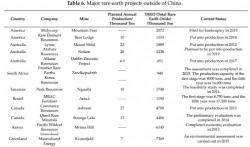 la mine de Mountain Pass, le Canada, l’Australie et l’Afrique du Sud avaient aussi multiplié les projets