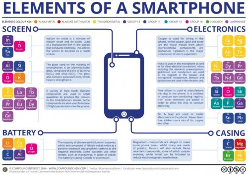 Pour Apple, la situation est plus compliquée. Si on exclut l’iPhone 12 (composé en partie de terres rares recyclés) la marque à la pomme est extrêmement dépendante des matériaux en terres rares. Selon CultofMac.com, 9 éléments chimiques du groupe des matériaux dits de terres rares sont utilisés dans le produit phare d’Apple, l’iPhone. Ce sont, avec leurs symboles chimiques : Yttrium (Y), Lanthane (La), Cérium (Ce), Praséodyme (Pr), Néodyme (Nd), Europium (Eu), Gadolinium (Gd), Terbium (Tb), et Dysprosium (Dy).