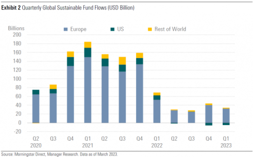 Les fonds durables ont collecté 29 mds US au 1er trimestre 2023 au niveau mondial, la décollecte continue aux Etats-Unis