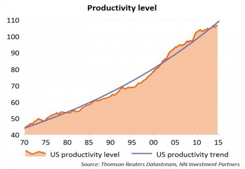 At the same time, however, investors need to realise it all follows from an assumption - structurally lower productivity growth - that is surrounding by significant uncertainty itself. Moreover, it is not necessarily in line with either historical experience or current observations on technological progress in many sectors in the economy. Historical patterns in productivity growth show large and sometimes longlasting swings, but mainly reveal unpredictability rather than easily identified regime-shifts into either structural accelerations or declines.