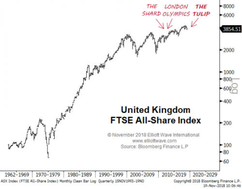 We suspect the architects behind “the Tulip” are giving a nod to the famous European Tulip Mania of 1637. Even if the building is never completed, there may be no more fitting end to such a long trend toward positive social mood in the U.K.