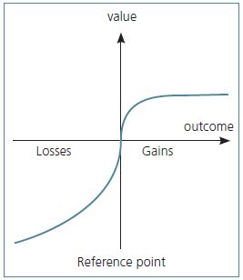 A behavioral perspective is useful here. One of the findings of Kahneman & Tversky, the initiators of the behavioral finance theory in the 1970s, is that investors are generally averse to loss asymmetrically. In other words, the pain felt when losing is higher than the joy felt when winning with the same magnitude, as illustrated by the utility function below.