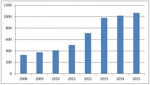 Pourtant, il ne faut pas perdre de vue que leur allocation CTAs est généralement faible, « pesant moins de 10% de leur poche hedge fund » comme le rappele Sol Waksman, président et fondateur de BarclayHedge. D’ailleurs, on dénombre un petit millier d’investisseurs institutionnels actuellement positionnés sur ce type de fonds comme le montre le graphique ci-dessous.