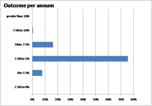 In this example, the probability of reverse CMS returns to be between 2.5% and 5% is 75%.