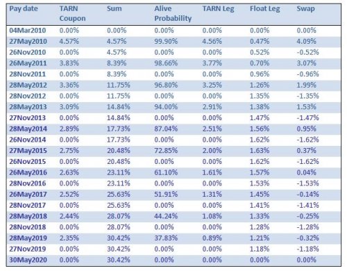 A major U.S bank has recently issued Target Accrual Redemption Note (TARN) on reverse CMS (Constant Maturity Swap). This product pays a coupon indexed on a reverse, capped and floored CMS until the sum of coupon payments reach a target objective.