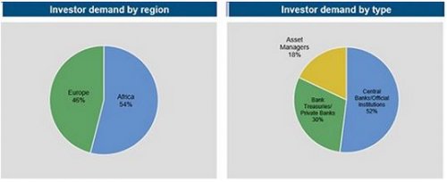 Sub-Saharan African Central Banks showed strong interest from the outset, taking 52% of the transaction, the rest being allocated to bank treasuries, private banks and asset managers.
