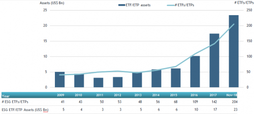 Global ESG ETF and ETP asset growth as at end of November 2018
