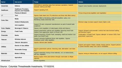 Figure 3 : répercussions sectorielles d’une victoire de Clinton ou de Trump