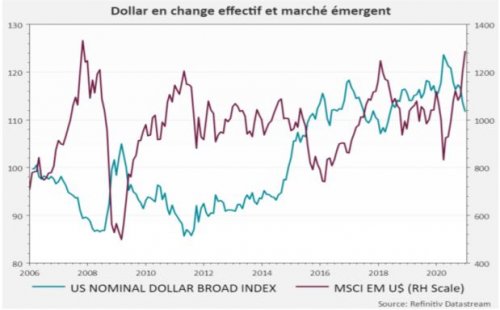 La croissance mondiale va rebondir en 2021, de l’ordre de 5% après une chute de plus de 4% en 2020. La dynamique de rebond telle qu’elle s’observe depuis quelques semaines semble plus favorable aux pays émergents sur les marchés financiers. Plusieurs arguments peuvent être mis en avant pour expliquer ce retour en grâce des investisseurs...