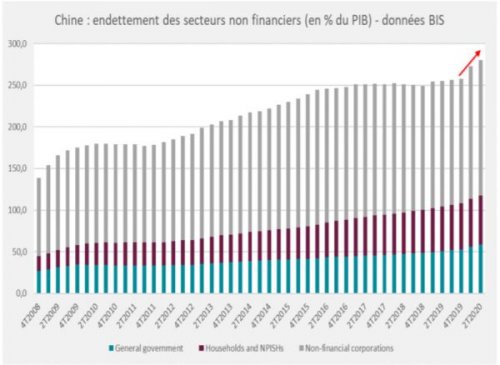Les choix politiques des autorités pour soutenir puis relancer l’économie se traduisent aujourd’hui dans une croissance qui apparaît encore déséquilibrée, retrouvant les travers observés après la crise financière de 2008. Le choix a été fait de relancer l’activité industrielle, par le canal des grandes entreprises publiques, dont la productivité reste bien inférieure à celle du tissu industriel privé, en se recentrant sur la demande extérieure. Les politiques de rééquilibrage structurel ont largement été mises en suspens pendant l’année 2020. Cela se traduit dans la relative faiblesse du rebond de la consommation des ménages, le soutien budgétaire ayant été particulièrement modeste, à contrario de ce que l’on a pu observer dans les pays développés ou même au Brésil. La protection sociale reste grandement inadaptée, avec notamment une couverture du chômage des plus limitées ne couvrant qu’un tiers de la population active urbaine, et un cinquième des migrants. Selon le FMI, sur le 1er trimestre 2020, seuls 10% des 23 millions de chômeurs ont reçu des allocations. Les deux points essentiels à surveiller pendant les prochains trimestres seront donc la restauration du niveau d’emploi permettant de retrouver une consommation intérieure dynamique et l’évolution de l’endettement privé dans le pays. En effet, l’autre effet pervers de la nature de la politique de soutien mise en place par les autorités est l’accroissement de l’endettement des entreprises, après plusieurs trimestres de stabilisation (graphique). La multiplication en fin d’année 2020 d’annonces de défauts d’entreprises vient confirmer nos craintes en la matière.