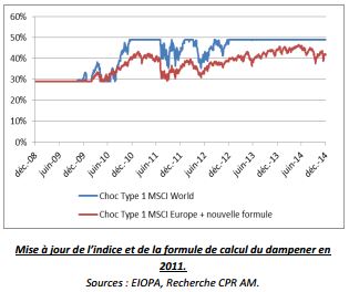 L’entrée en vigueur de Solvabilité 2 est maintenant imminente et les derniers calibrages sont en cours de finalisation. En particulier, sur le pilier 1, en ce qui concerne le calcul du SCR Marché, et plus précisément du SCR Actions, l’indice actions sous-jacent au calcul du mécanisme d’ajustement symétrique, plus communément appelé « dampener », fait l’objet d’ITS (Implementing Technical Standards) publiés par l’EIOPA fin 2014 et en consultation publique jusqu’au 2 mars 2015.