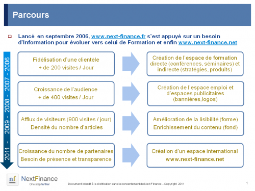 Enfin le portail www.next-finance.net permet de découvrir / parcourir des rubriques animées par les partenaires actifs sur la place financière française.