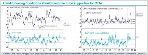 are taking place. Overall, CTAs currently provide a great deal of diversification against rich valuations in equity and