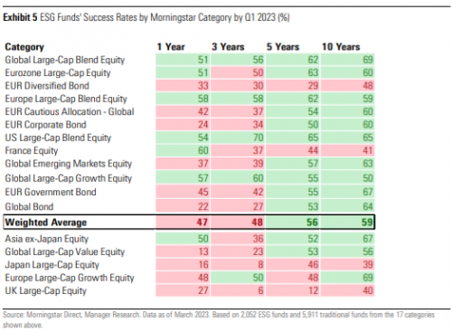 • Les fonds ESG dans certaines catégories d’actions ont affiché des taux de réussite en progrès vers la fin du premier trimestre 2023.