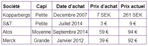 Kopparbergs : cette petite capitalisation, découverte en décembre 2007 par l’analyse buy-side, spécialisée dans la production du cidre de différentes saveurs, ainsi que d’autres produits, a connu un développement très fort grâce à demande soutenue de ses produits dans les différents pays européens, notamment en Angleterre. En l’espace de 8 ans sa valeur a été multipliée par 37. Cette évolution est due en partie à l’attrait qu’elle représente désormais pour les investisseurs.