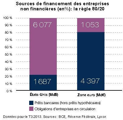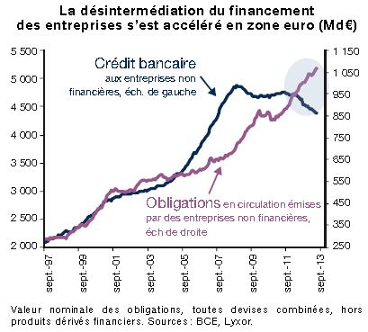 En renforçant les exigences de liquidité des banques, les autorités et les superviseurs réduisent aussi le poids de l’intermédiation bancaire dans le financement de l’économie, en particulier en Europe. Si aux États-Unis le financement de l’économie est désintermédié à hauteur de 80 %, c’est tout l’inverse en Europe où 4400 milliards d’euros de prêts bancaires aux entreprises représentent 80% de leurs sources de financement. Une hausse de 10 % de la désintermédiation représenterait ainsi un marché d’environ 450 milliards d’euros.