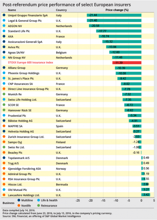 The nonlife insurer shed 21.4% by July 13 since the British referendum June 23, the result of which only heightened fears of an upcoming vote on constitutional reform in Italy, which could potentially topple the center-left government of Matteo Renzi.