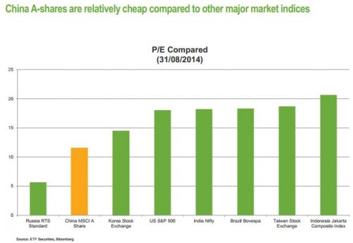 According to ETF Securities, A-shares are the cheapest they’ve been since the 2008 global financial crisis. China equities have underperformed developed market equities over the past few years and valuations reflect this. China A-shares as measured by the MSCI China A Index are now the cheapest in PE terms they’ve been since the worst part of the 2008 global financial crisis. “With the Chinese government committing itself to accelerated economic reform and financial liberalisation at its watershed Third Party Plenum in November 2013, economic growth stabilizing in a more sustainable 7-8% range and China’s equity market capitalisation still low relative to the size and importance of its economy, we believe China A shares have excellent long-term prospects” says Henri Boua.