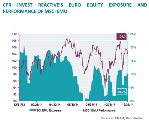 Management of CPR Invest Reactive was once again highlighted by quick responsiveness throughout the year. To cite one example, the equity exposure of CPR Invest Reactive ranged from 37% to 80%, while the portfolio’s sensibility ranged from 0.6 to 4 during the period under review. Our big achievement this year was to have very skillfully weathered a tumultuous summer period during which our funds as a whole achieved gains despite a significant market correction.