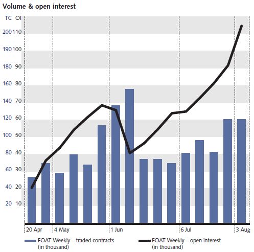 More than 153 trading participants have been active in the contract since product launch - 70 participants on a daily average, with a rising trend. The first contract roll-over and delivery process in June 2012 went smoothly. Open interest in the September contract now stands at more than 108,000 contracts.