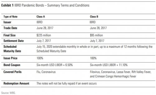 in June 2017 (see Exhibit 1). Class A of these pandemic bonds totalled $225 million while Class B