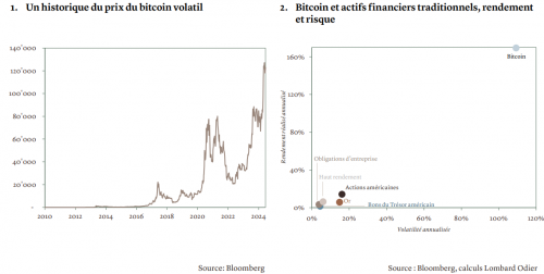 En 2024, le bitcoin s’est échangé pour la première fois à plus de 100’000 USD, ce qui a porté son rendement à 120% sur l’ensemble de l’année. Nous examinons les facteurs dont les investisseurs doivent tenir compte lorsqu’ils décident de détenir des cryptomonnaies en portefeuille.