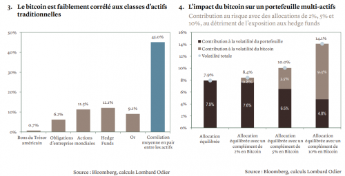 Le ratio de Sharpe qui en résulte - une mesure du rendement par rapport au risque – est en moyenne supérieur à celui des autres actifs financiers. La corrélation entre le bitcoin et les actifs traditionnels est également très faible (voir graphique 3). Cela dit, la véritable spécificité du bitcoin est son extrême volatilité, ainsi que ses chutes impressionnantes après avoir atteint des sommets.